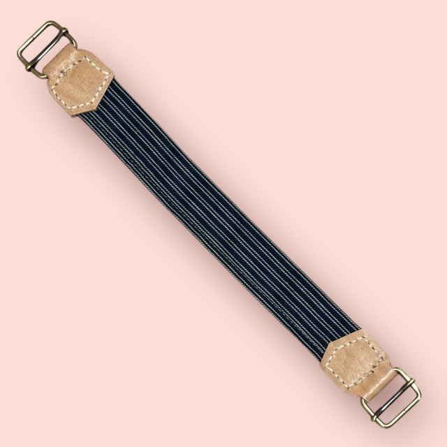 【風呂敷と繋げるとバッグとして使うことができる、風呂敷ハンドル】 お手持ちの風呂敷がバッグに早変わり! 〇サイズ:長さ32cm 幅3~3.2cm (手作りのため、サイズは多少前後します) 革アクセサリー工房「kimono&Western」さんとのコラボ商品。 工房で1点1点手作りしています。