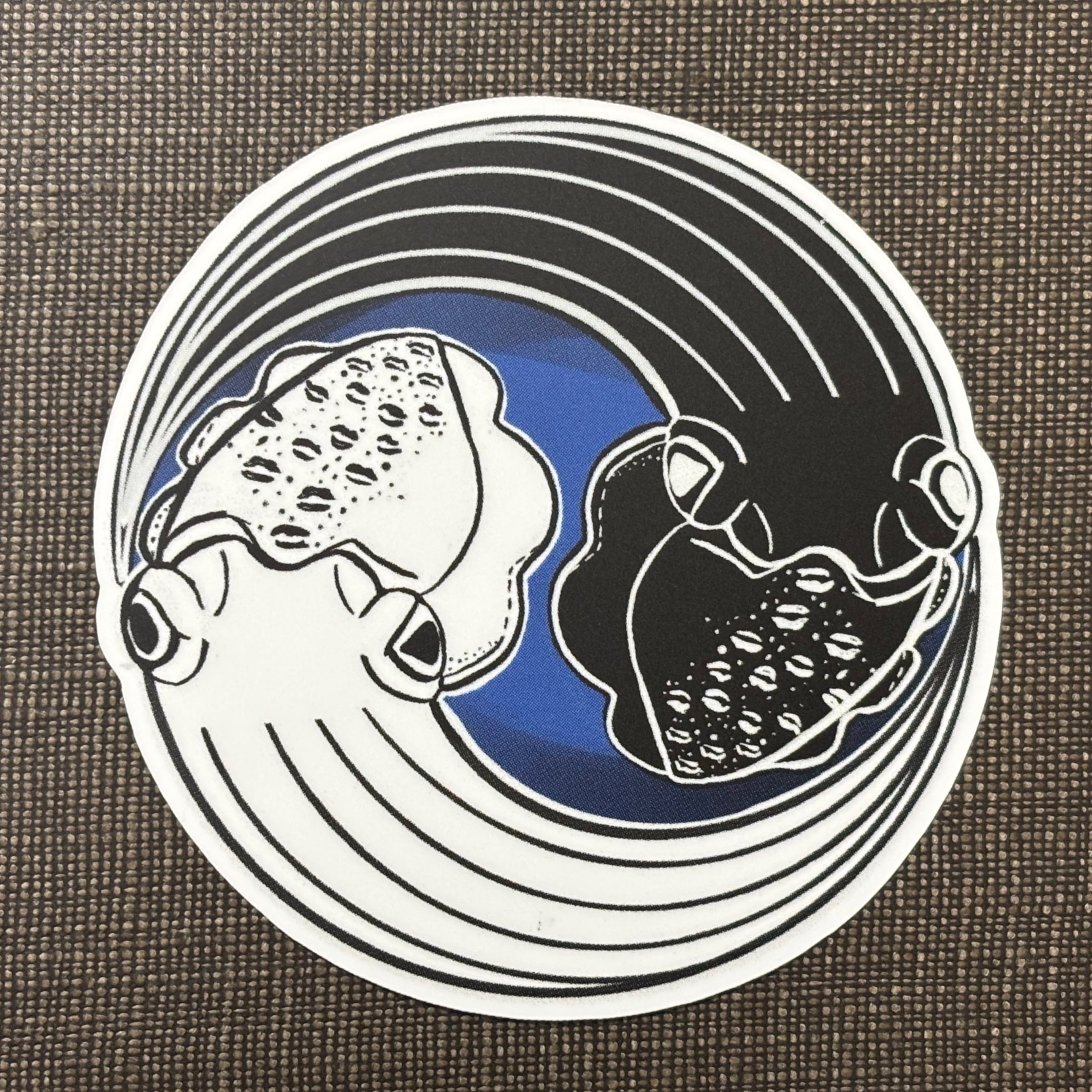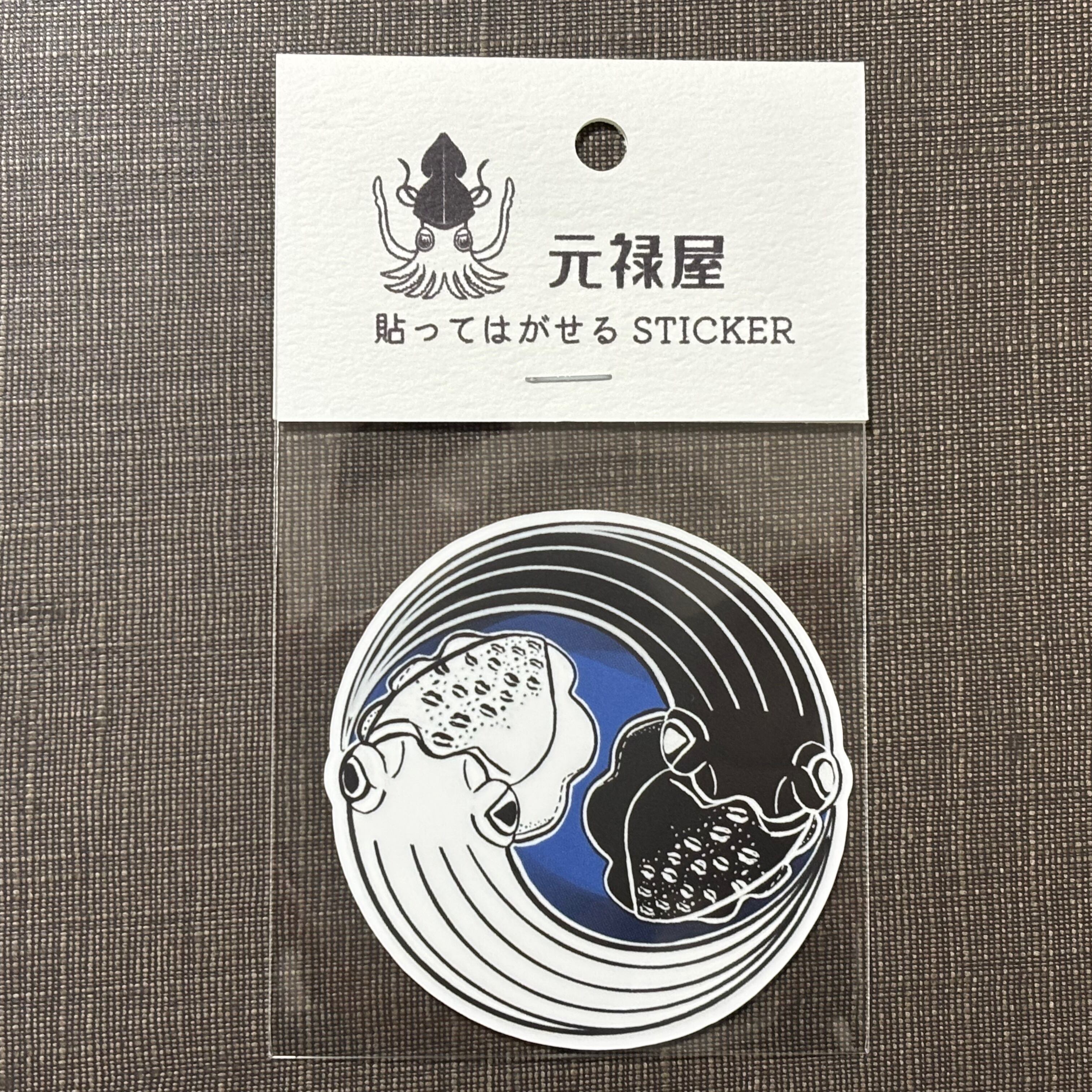 オリジナルデザイン、イカ紋を使ったステッカー。貼ってはがせる、再剥離タイプです。
